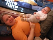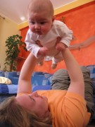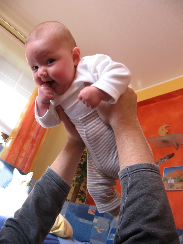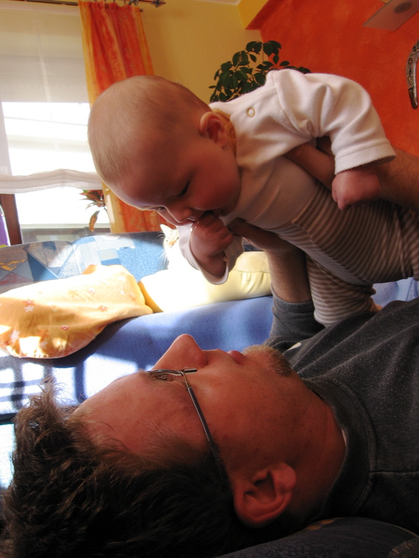 Hier kurz die sehr einfachen Spielregeln erklärt: Man hebe mich – den Flieger – waagerecht in die Luft und mache dazu ein Brummgeräusch mit dem Mund wie ein Flugzeug. Als Anfängervariante und Leute mit schwachen Armen darf man das Spiel in liegender Position durchführen. Für Fortgeschrittene gilt der Flug durch die Wohnung.
