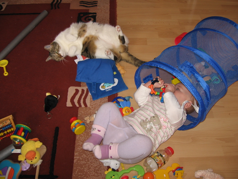 Mittlerweile hab ich ja schon eine Menge Spielsachen. Damit abends alles schön aufgeräumt ist, hat mir Mama extra eine Spieltonne geschenkt. Soweit okay, aber wie das Spielzeug wieder aus dieser Tonne kommt, dass wird total mir überlassen. Clever wie ich bin, hab ich das Problem schnell gelöst … mit tatkräftiger Unterstützung von Tiger.