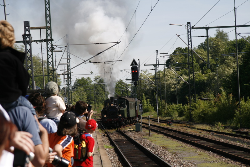 Da standen wir nun … ich in meinem Rennwagen unter vielen Leuten. Plötzlich hörte ich in der Ferne ein Geräusch …. „sch sch sch sch“. Irgendetwas hatte mir die Show gestohlen, denn jeder, der vorher noch zu mir geschaut hatte, guckte nun in Richtung eines großen schniefendes Etwas. Dieses „Etwas“ kam direkt auf uns zu und machte vor uns Halt. In den Armen von Mama und etwas skeptisch schauend musste ich mit zusehen, wie jemand mit meinen Rennwagen in einem der Anhänger an diesem „Etwas“ verschwand.