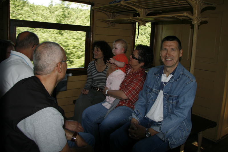 Anschliessend sind Mama und ich auch eingestiegen. Alle anderen Leute, die vorher um meinen Wagen standen, hatten auch schon Platz in dem Anhänger genommen. Irgendjemand sagte noch, dass sei das Sofazügle … die Bank, auf der ich saß, war aber nicht so bequem wie unser Sofa daheim.