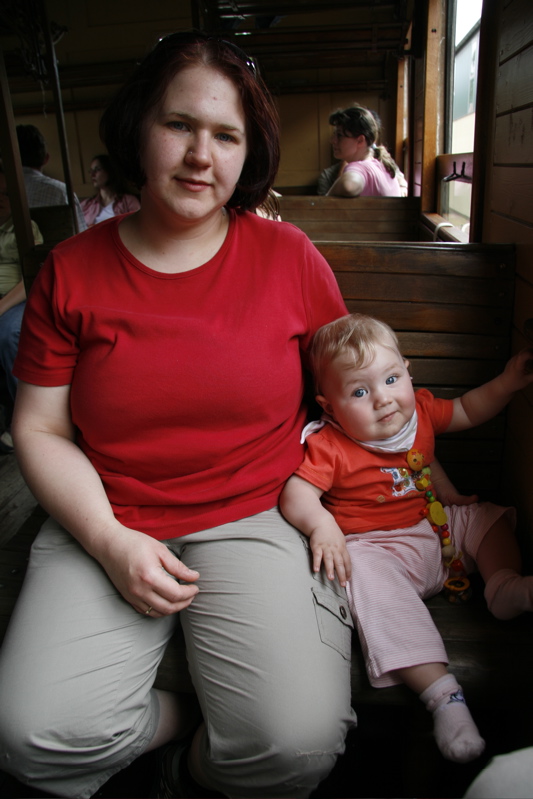 Drum hab ich auch schnell bei Mama auf dem Schoß Platz genommen. Von dort aus konnte ich auch super aus dem Fenster schauen, wie langsam Haus für Haus und Baum für Baum an uns vorbeizog. Irgendwann war „aus dem Fenster schauen“ langweilig, deshalb hab ich mal die Initiative ergriffen und ein wenig für Unterhaltung gesorgt. Mit Händeklatschen und „Ga ga ga“ kam schnell gute Stimmung in unserem Wagen auf.