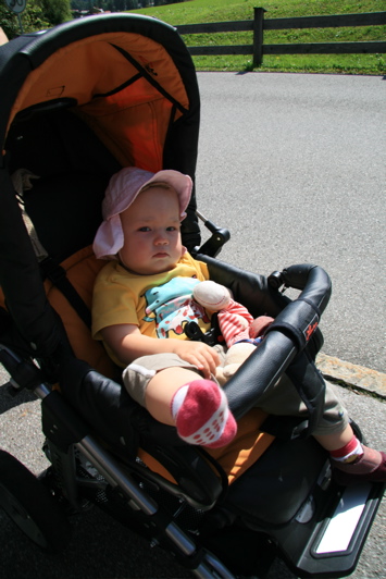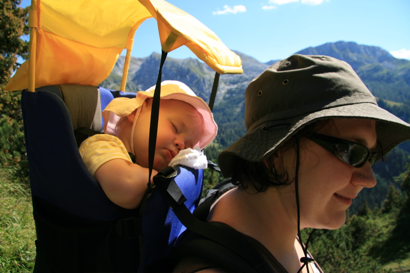 Bei unseren Touren in die Berge war ich froh, dass ich noch ein kleines Kind bin. Da hat man nämlich das Privileg entweder im Kinderwagen geschoben oder auf dem Rücken getragen zu werden. So konnte ich mir in Ruhe die schöne Natur links und rechts anschauen … oder mit meinen Füßen spielen, gemütlich chillen oder ein kleines Nickerchen halten. Nur wenn ich mal Lust dazu hatte, hab ich auch ein paar Schritte selber zurück gelegt.
