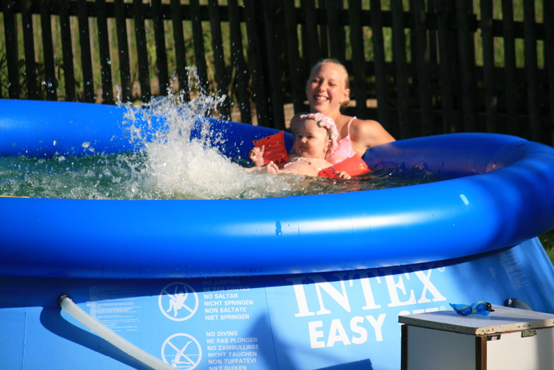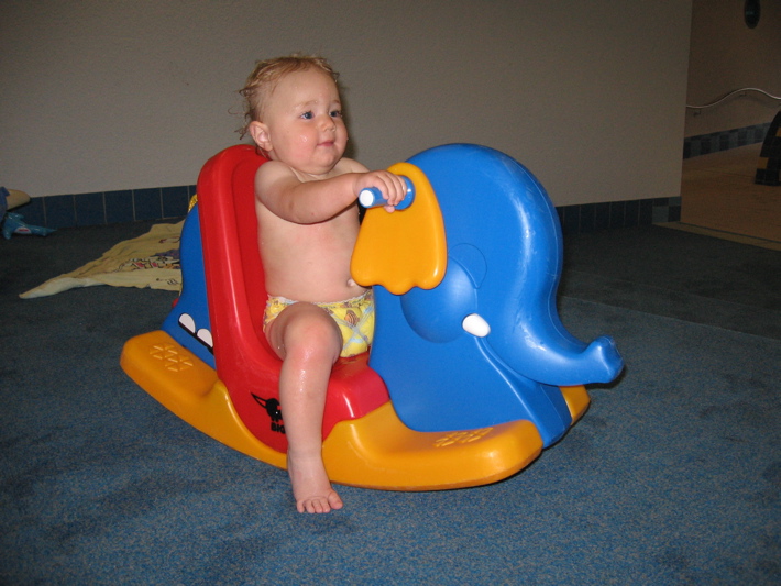 Überhaupt, das viele Wasser, was ich geschluckt hatte, fand sich kurze Zeit später in meiner Windel wieder. Und wenn ich nicht im Wasser war, dann hab ich mir die Zeit mit dem Spielzeug am Beckenrand vertrieben. Irgendwann ging es dann wohl auch zurück in unsere Ferienwohnung … zumindestens bin ich dort am Morgen des nächsten Tages wieder aufgewacht. Vom Rest dazwischen hab ich überhaupt nichts mehr mitbekommen … so fertig war ich vom vielen Planschen gewesen.