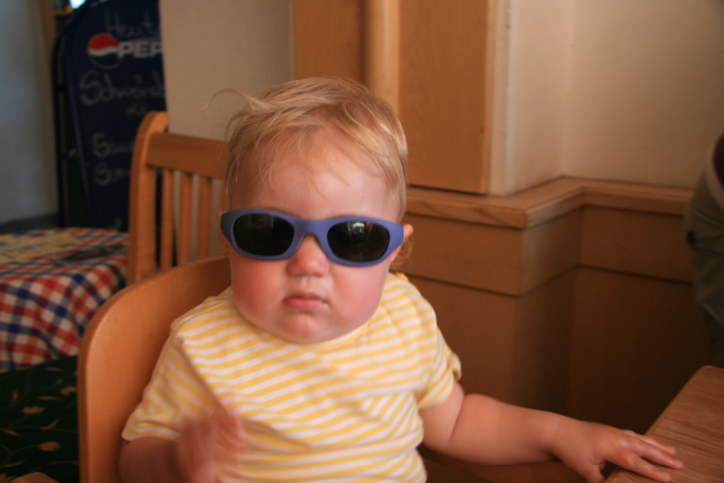 Bei dem schönen sonnigen Wetter hatte jeder von uns eine Brille getragen … ja, auch ich hatte meine eigene Sonnenbrille. Ist sie nicht schick, oder? Aber ich musste mir natürlich auch die Brillen von Mama, Papa und Tante Silke näher anschauen und prüfen, ob sie mir auch stehen.