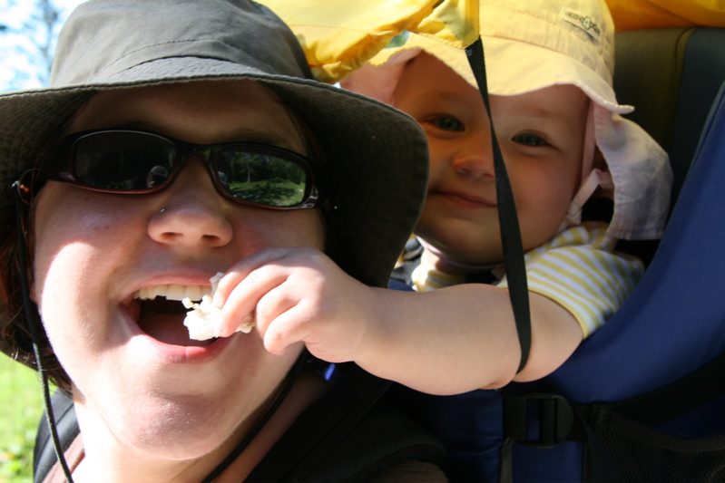 Als mich Mama zum Beispiel durch die Berge getragen hat, hab ich mit ihr meine Reiswaffeln geteilt. Wäre ja auch zu blöd gewesen, wenn sie mir plötzlich mitten im Nirgendwo schlapp macht und ich nicht mehr zurück in die Ferienwohnung gekommen wäre, oder?