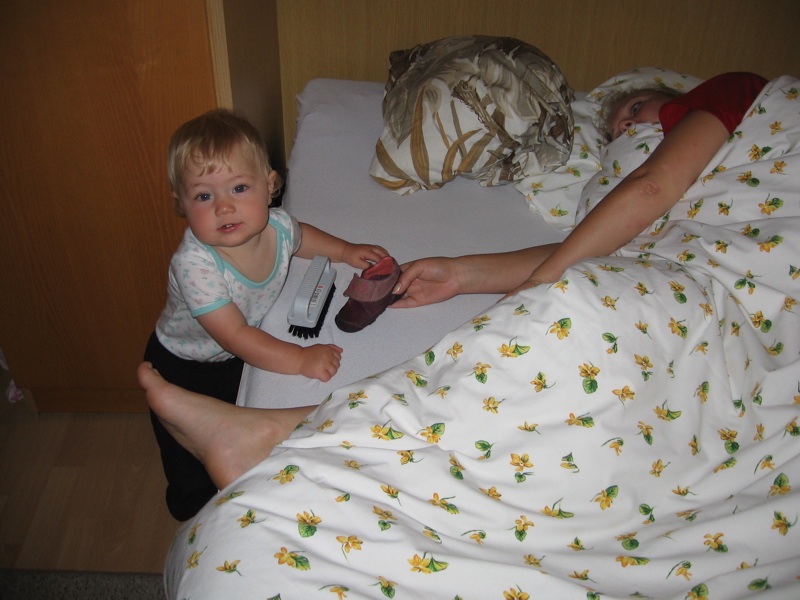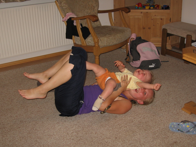 Schliesslich will ich ja etwas vom Tag erleben. Und so stand ich jeden Morgen früh um 6 in meinem Bett und habe Mama und Papa auf meine einfühlsame Weise lauthals geweckt. Bestechungsversuche wie Kuscheln zu dritt im Bett habe ich maximal bis 7 zugelassen … Anschliessend hab ich Tante Silke auf meine Art gezeigt, was ich gern möcht.