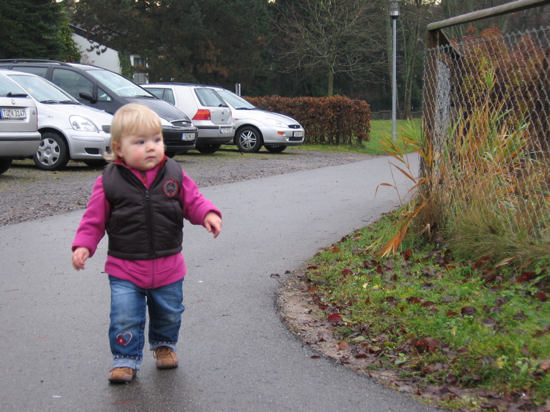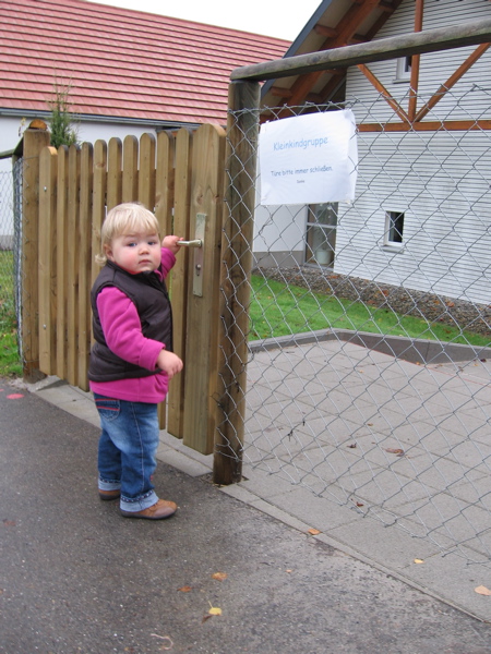Mama und Papa haben ja schon seit ein paar Wochen darüber gesprochen, dass ich bald in die Kinderkrippe gehen werde. Bis heute hab ich nicht gewußt, was mich da erwarten würde. Nichtsahnend bin ich also heute Morgen mit Papa zu dieser Kinderkrippe gelaufen. Das ist ein richtig anstrengender Weg mit vielen Bergen. Und das soll ich jetzt jeden Tag laufen ? …. na mal schaun.