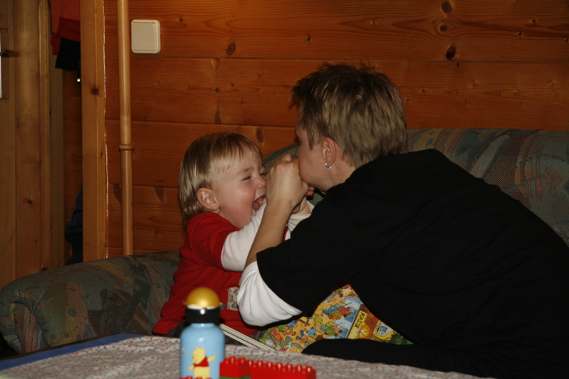Ich hatte eine Menge Spaß … sei es beim Bücher lesen mit Katja und Bianca, beim vielen Rumalbern oder bei dem einen oder anderen Ausflug in die Umgebung. Einfach nur Erholung und Entspannung war das Motto für mich. Trotz der vielen Gelassenheit war ich am Abend immer so was von müde. Bevor ich in’s Bett ging, gab es noch eine Folge von meiner Sandmann-DVD. Dafür haben es sich selbst die Großen auf der Couch bequem gemacht.