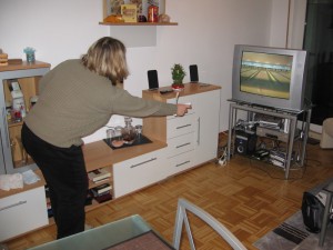 Die hampelten so vor dem Fernseher herum. Hin und wieder haben sie sich auch mal bei mir blicken lassen. Aber die meiste Zeit waren Evi und Andy bei mir. Denen habe ich natürlich auch gleich meine neueste Entdeckung mit der Hand im Mund gezeigt. Dabei erzählte
