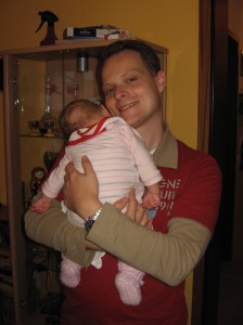 Ich habe mich die ganze Zeit von meiner besten Seite gezeigt — und in meinem Stubenwagen ein Nickerchen gehalten. Beinahe hätte ich sogar den gesamten Besuch verschlafen, hätte mich nicht ein Knurren in der Magengegend geweckt. Nachdem Papa das Hunger-Problem mit dem Fläschchen beseitigt hat, habe ich es mir in Swen’s Armen bequem gemacht — und wieder eine Runde geschlafen.