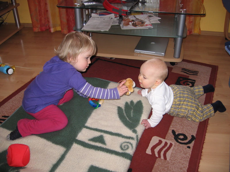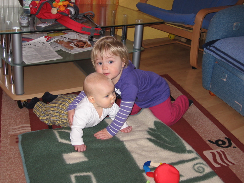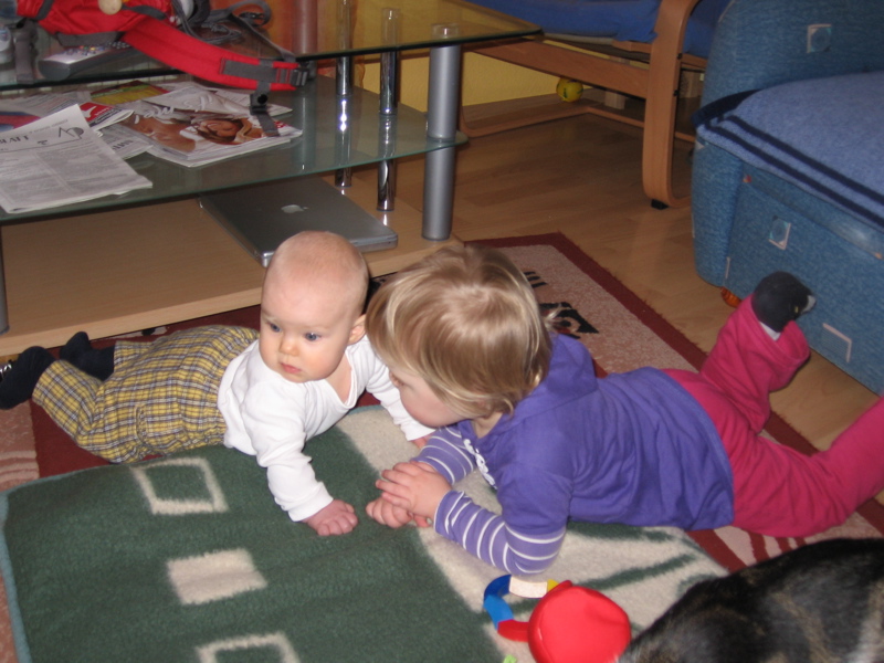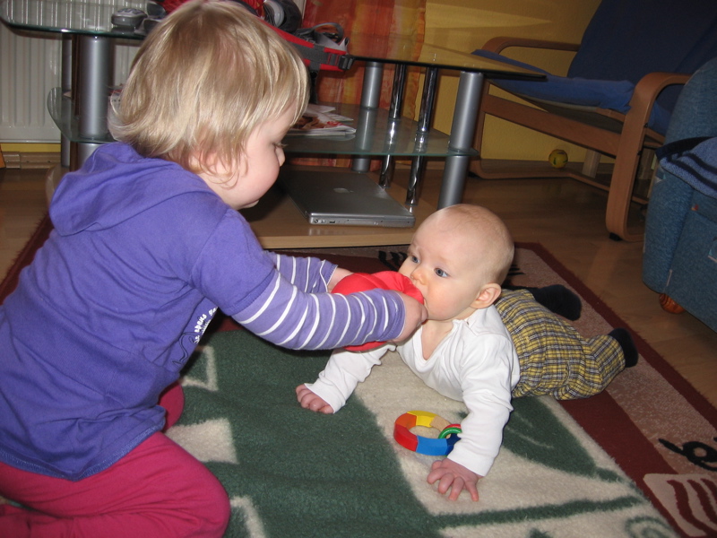 eben Mama auf Trab gehalten. Außerdem konnte ich mich in der Rolle als „große Schwester“ üben … mein Spielzeug teilen, Schnuller oder Flasche geben … Nur mit dem Hochheben hat es noch nicht so geklappt. -