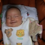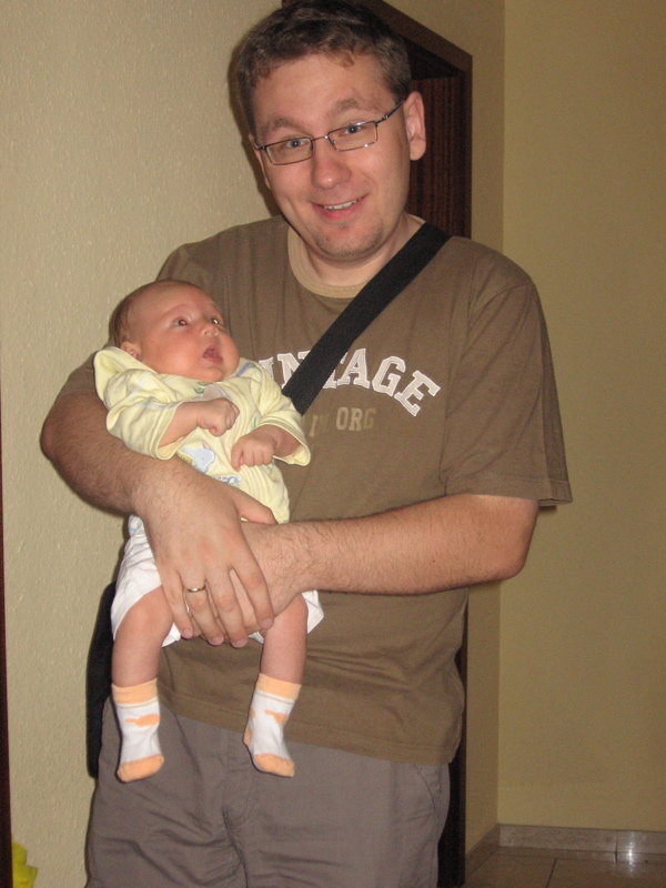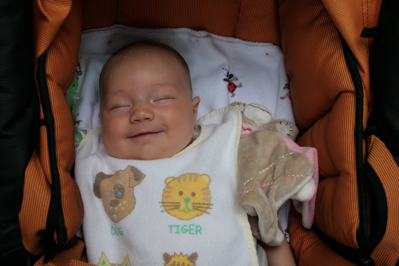 Tja, da war wohl die lange Heimfahrt von Bischofswerda für Mama anstrengender wie für mich. Gestern abend ist sie im Wohnzimmer auf der Couch eingeschlafen und von dort nicht mehr aufgestanden. Zum Glück gab es noch eine große Flasche für mich im Kühlschrank, mit der Papa meine nächtlichen Hungerattacken stillen konnte.Heute morgen war Mama aber auch noch nicht so richtig munter. Deshalb hab ich mir den Papa geschnappt und bin mit ihm bei uns im Ort einkaufen gegangen. Milch und Brötchen für das Frühstück standen auf dem Einkaufszettel. Vom Besuch beim Bäcker hab ich noch etwas mitbekommen. Danach bin ich wohl ruckzuck in Papa’s Arm eingeschlafen. Tja, shoppen ist wohl nicht mein Ding. Zum Glück von Papa und seinen Geldbeutel.