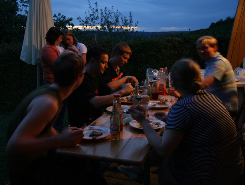 Nunja, da waren Nicole und Ramona zum Kaffee trinken bei uns. Und kaum als wir damit fertig waren, erzählten die beiden, dass sie heute abend noch grillen wollen. Und weil Mama nach der ganzen Kuchen-Backerei in den letzten Tagen keine Lust mehr hatte selbst zu kochen, hat sie uns einfach selbst mit eingeladen. Mich hat sie dabei als Lockmittel verwendet, denn schliesslich konnten so auch die beiden Freunde von Nicole und Ramona einen Blick auf mich werfen. Nicole und Ramona fanden die Idee wohl auch sehr gut und waren sofort begeistert — wer weiß, was sie mit ihren Freunden noch im Schilde führen.