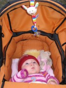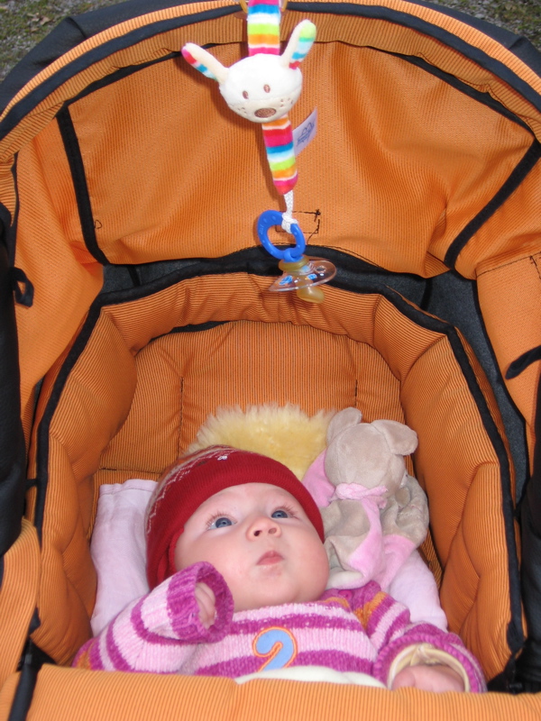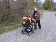 Während Papa mich durch die Gegend getragen hat, durfte Mama meinen Rennwagen schieben — sozusagen als Begleitfahrzeug.