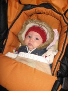 Los ging es am Samstag mit einem Besuch auf dem Weihnachtsmarkt — mein erster Weihnachtsmarkt. Draußen kam so weißes Zeug vom Himmel und es war saukalt. Wohl deshalb haben mich Mama und Papa so dick angezogen.