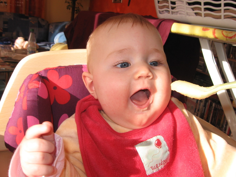Übrigends: Mama mischt nun auch schon Putenfleisch in meinen Brei. Der lässt sich zwar nicht mehr so leicht runterschlucken, aber schmeckt immer noch lecker!
