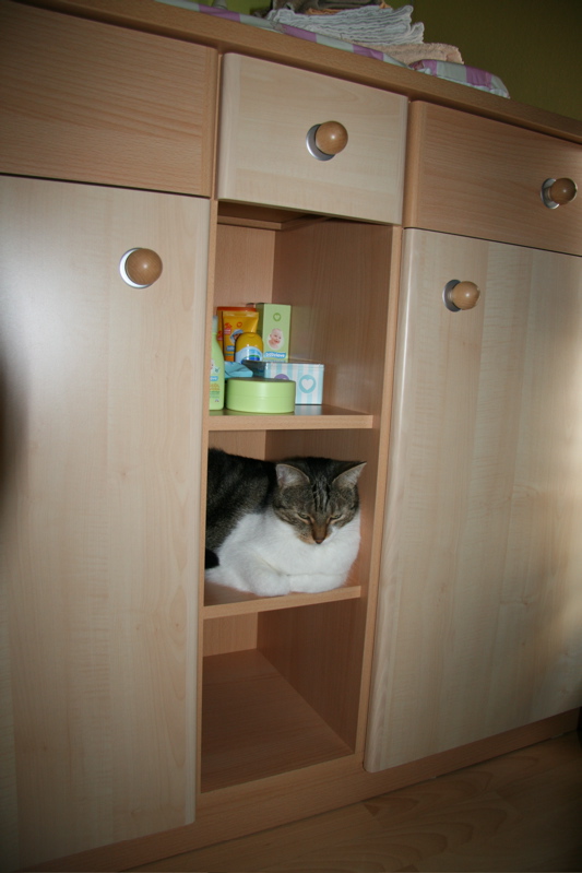 Nun habe ich ein Bettchen, einen Stubenwagen, eine Wickelkommode, eine Kuschelecke mit Schaukelstuhl und einen riesigen Kleiderschrank. Und so sieht das Ergebnis nun im Ganzen aus: