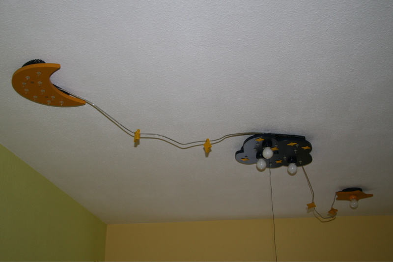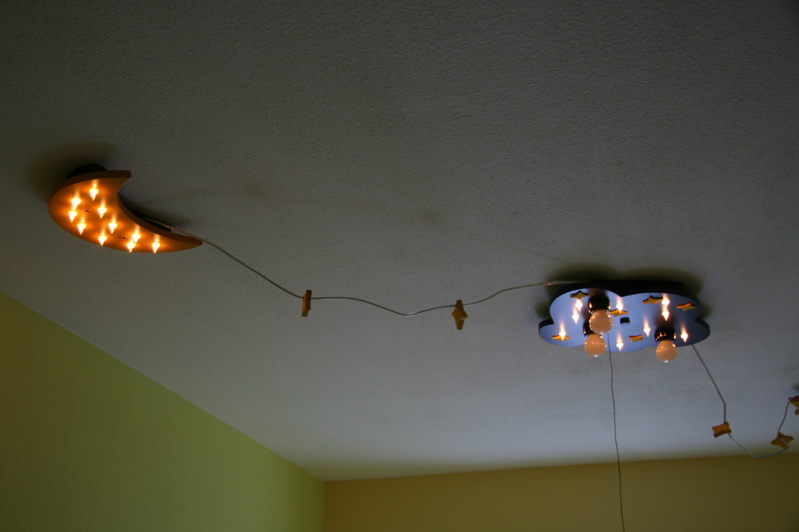 Natürlich habe ich auch eine Deckenbeleuchtung — meinen eigenen Himmel mit Wolke, Mond und Sterne.