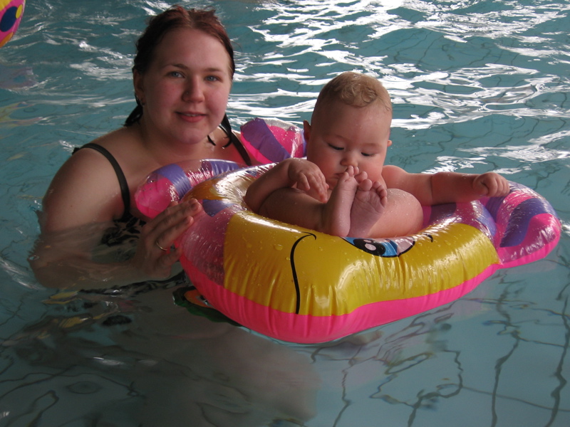 Besonders gefallen hat mir mein Seepferdchen, an dem ich so wunderbar lutschen und drauf kauen kann. Aber auch der Schwimmreifen eignet dafür wunderbar. Ich versteh nur nicht ganz, warum Mama mich immer warnt, nicht so doll zu beißen .. sonst gänge die Luft raus und ich unter.