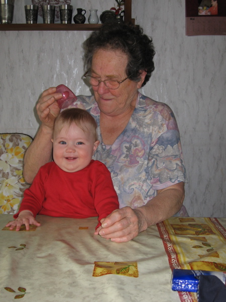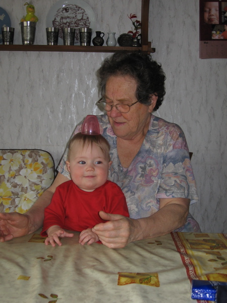 Mama und ich waren heute bei Ur-Oma zu Besuch. Nachdem ich ihr meine neuesten Errungenschaften gezeigt hab und krabbelnd jedes Zimmer bei ihr einzelnd erkunden hab, war mal wieder Zeit für eine Runde Quatsch machen. Ur-Oma ist da natürlich sofort dabei und hat mir kurzerhand ein Hütchen auf meinen Kopf gesetzt. Einmal mit dem Kopf von links nach rechts geschüttelt … schwups … da lag das Hütchen wieder auf dem Tisch. Ur-Oma fand das toll. Ich natürlich auch …