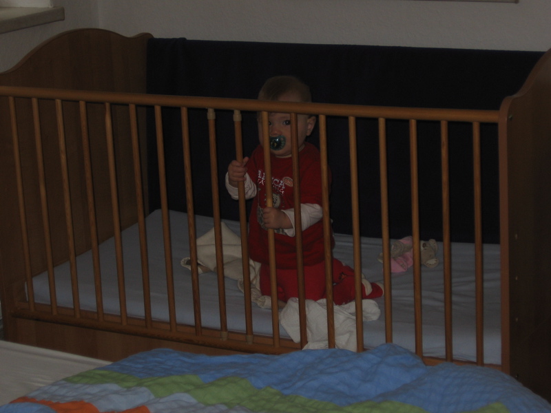 Naja, irgendwann saßen wir zu dritt im Auto und sind auf der Autobahn unterwegs gewesen. Für mich kam es wie eine Ewigkeit vor … zum Glück hab ich davon die meiste Zeit in meinem Rennsessel verschlafen. Am ersten Etappen-Ziel angekommen – es war mittlerweile abends – ist es mir dummerweise schwer gefallen in den Schlaf zu finden. Oder lag es an dem fremden Kinderbett? Ich weiß nicht. Zum Glück stand das Bett von Mama und Papa direkt neben meinem, so war der Weg für einen nächtlichen Bettenwechsel ganz kurz.