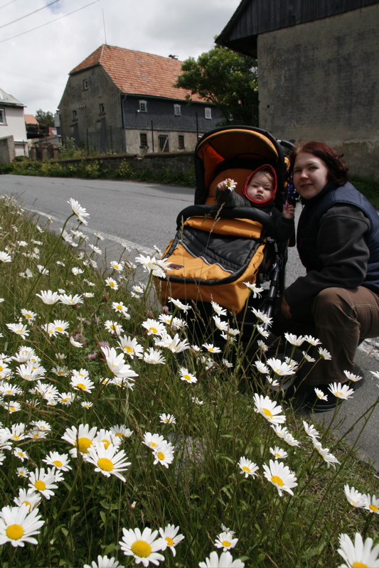 Wir sind natürlich nicht nur die ganze Zeit in der Wohnung geblieben. Hin und wieder gab es auch mal schönes Wetter – dann haben wir die Chance genutzt und uns ein wenig die Umgebung angeschaut. Interessant bei unseren Spaziergängen fand ich die Blumen, die überall am Wegesrand standen. An denen konnte ich Stück für Stück zupfen. Wenn ich damit fertig war, haben Mama oder Papa das Ergebnis meiner Arbeit von mir geschenkt bekommen.