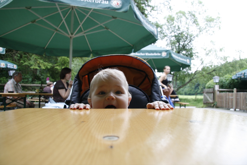 Ich kann es selbst kaum glauben … mittlerweile bin ich schon so groß, dass ich im Biergarten über die Tischkante schauen kann. Tja, so kann ich noch besser auf mich aufmerksam machen … und bin gleichzeitig nicht mehr so leicht zu übersehen. Wo ist meine Flasche?