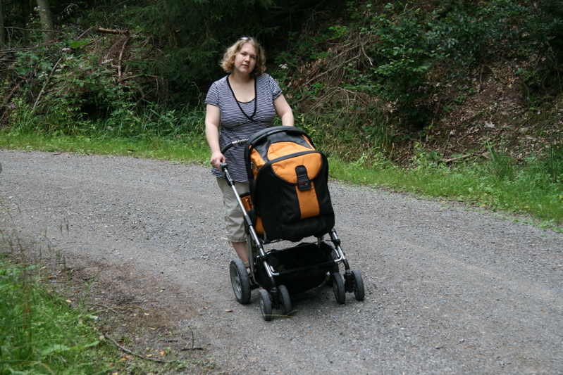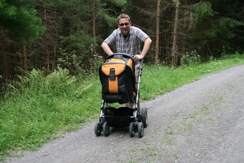Ich also in meinen Rennwagen und Mama bzw. Papa dahinter gespannt zum Schieben. So ging es ab in den Wald zu einem längeren Spaziergang.
