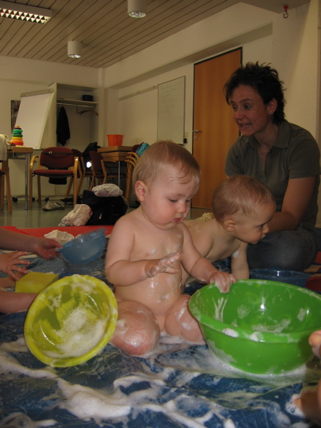 Jeden Donnerstag treff ich mich ja mit anderen Windelträgern in meinem Alter. Bei jedem Treffen singen uns unsere Mamas etwas vor. Außerdem tauschen wir Kleinen uns die Neuigkeiten aus der letzten Woche aus. Neben all diesen Sachen stand diesen Donnerstag noch etwas ganz Spaßiges auf dem Plan … Seifenrutschen. Am Anfang war ich ja noch ganz schön skeptisch … dafür später um so mehr dabei. Seht selbst …