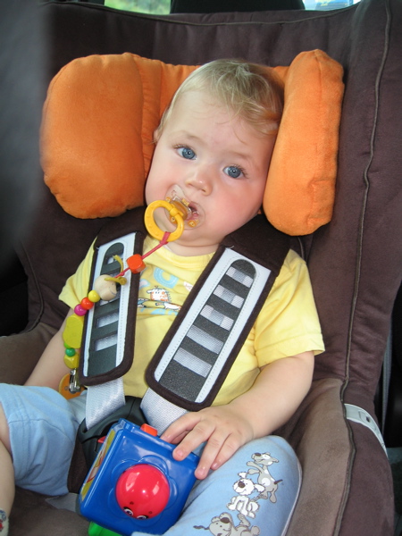 Ich war mal wieder mit Mama und Papa unterwegs. Die Fahrt hat mir so richtig Spaß gemacht, wie Du links auf dem Foto sehen kannst. Ehrlich gesagt, war es stink langweilig! Ich konnte nicht krabbeln, ich konnte nicht laufen … nur im Sessel sitzen und schlafen oder Mama zu schauen, wie sie genauso interessiert nach vorn starrte. Wenigstens hatten die beiden hin und wieder ein Erbarmen mit mir und haben einen Halt gemacht. Sonst hätte ich die Fahrt nicht überstanden, ehrlich nicht.