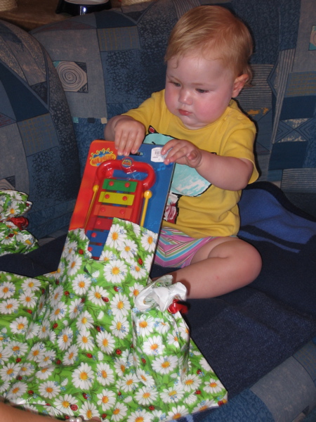 Gut verpackt waren viele Spielsachen und Dinge, mit denen ich Mama und Papa so richtig gut unterhalten kann. Aber ich hab ja nun schon Übung im Auspacken von Geschenken …