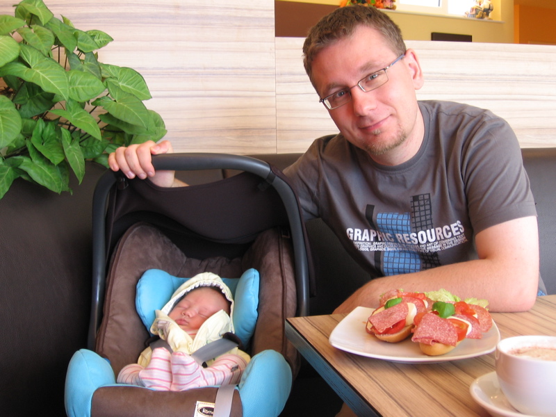 Nach einer kurzen Autofahrt fand ich mich in einem Cafe in Holzgerlingen wieder. Während die beiden sich ihre Mägen vollgeschlagen haben, nutzte ich die Chance um meinen fehlenden Schlaf von heute Morgen nachzuholen. Trotzdem hat es sich Papa nicht nehmen lassen, ein paar Fotos zu machen.