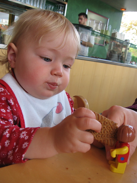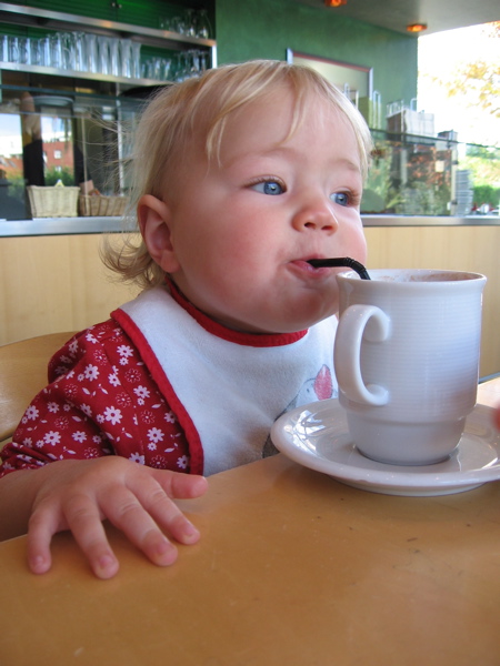 Zum Beispiel bekomme ich leckeren warmen Kakao zu trinken. Als kleine Herausforderung haben Mama und Papa einen Strohhalm in die Tasse gesteckt. Aber kein Problem für mich … mir war sofort klar, wie der Hase läuft. Den Keks, der beim Kakao dabei war, hab ich natürlich mit meinen Figuren geteilt.