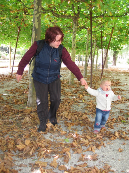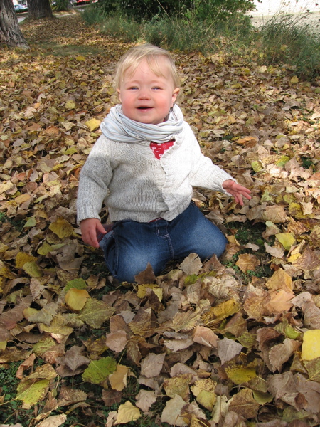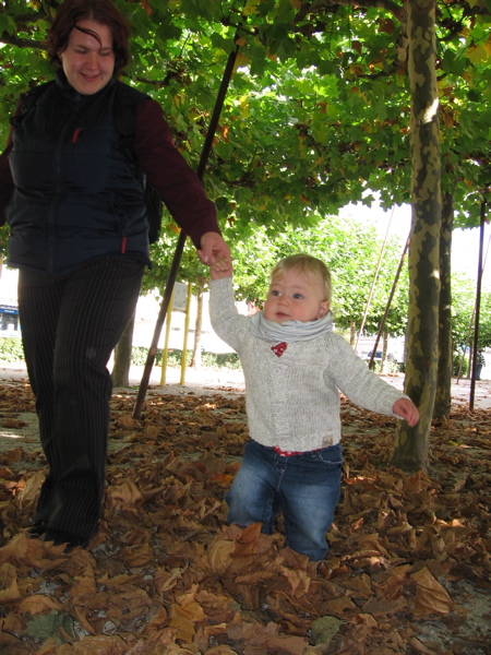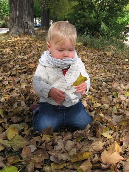 … oder Du sammelst ein Blatt nach dem anderen vom Boden auf. Wobei, dass gefällt Mama und Papa nicht ganz so sehr … bei so vielen Blättern kann ich schonmal eine Weile beschäftigt sein.