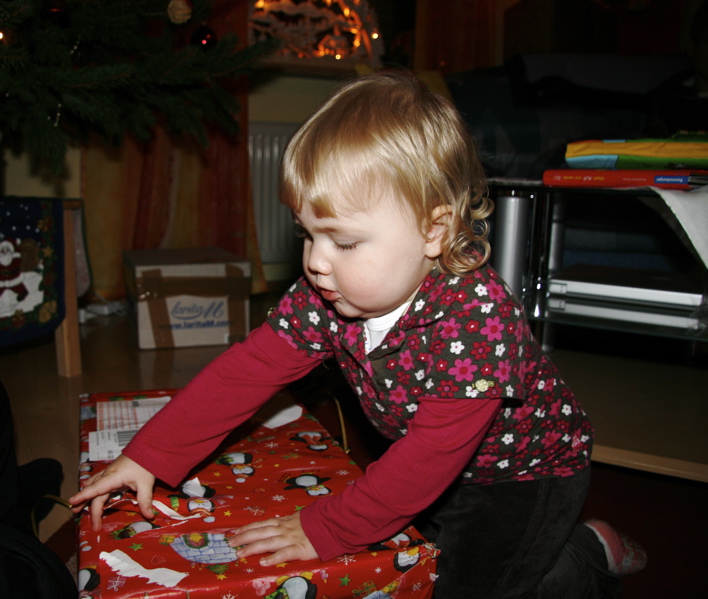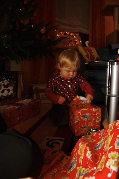Während ich mir nach dem Essen meine Hände waschen war, hab ich Mama und Papa nur ganz geschwind durch die Wohnung huschen sehen. Wieder zurück in der Stube, lagen da ganz viele bunte Pakete unter dem Weihnachtsbaum.