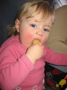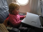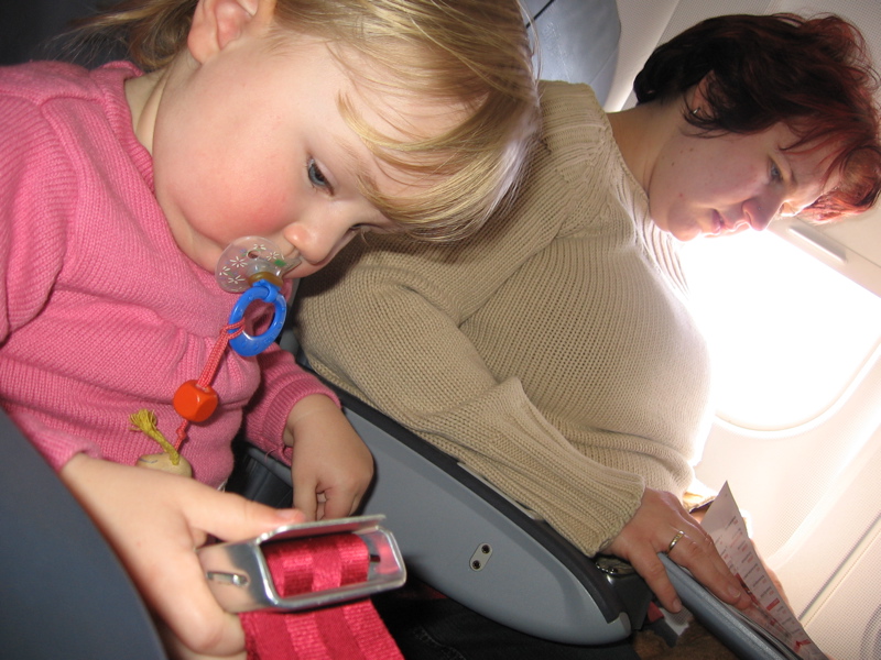 Viel schlimmer als die Warterei auf den Start war der Flug selber. Die ganze Zeit musste ich sitzen bleiben. Am Anfang hab ich mich noch mit dem Gurt beschäftigt und ihn auf und zu gemacht. Nach der zehnten Wiederholung war aber auch das langweilig. Zum Glück kam dann wieder die nette Frau vom Einstieg bei mir vorbei und hat mich gefragt, was ich denn gern zu essen hätte. Nam, nam … Kek. Damit ließ sich dann auch die restliche Zeit des Fluges gut verbringen.